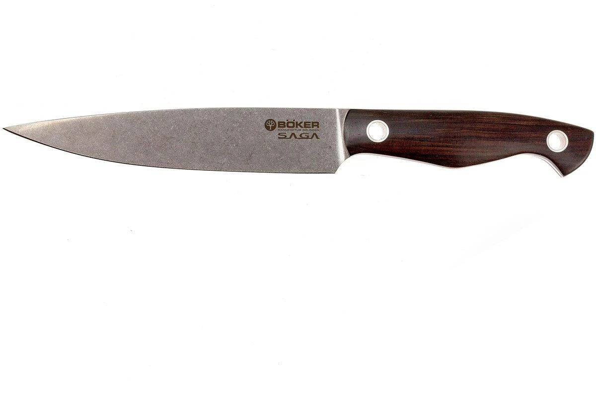 Böker no sólo produce increíbles cuchillos de exterior, sino también cuchillos de cocina. El fabricante danés de cuchillos Jesper Voxnaes se aseguró de que los cuchillos de cocina de la colección Saga tuvieran un aspecto y un tacto propios.