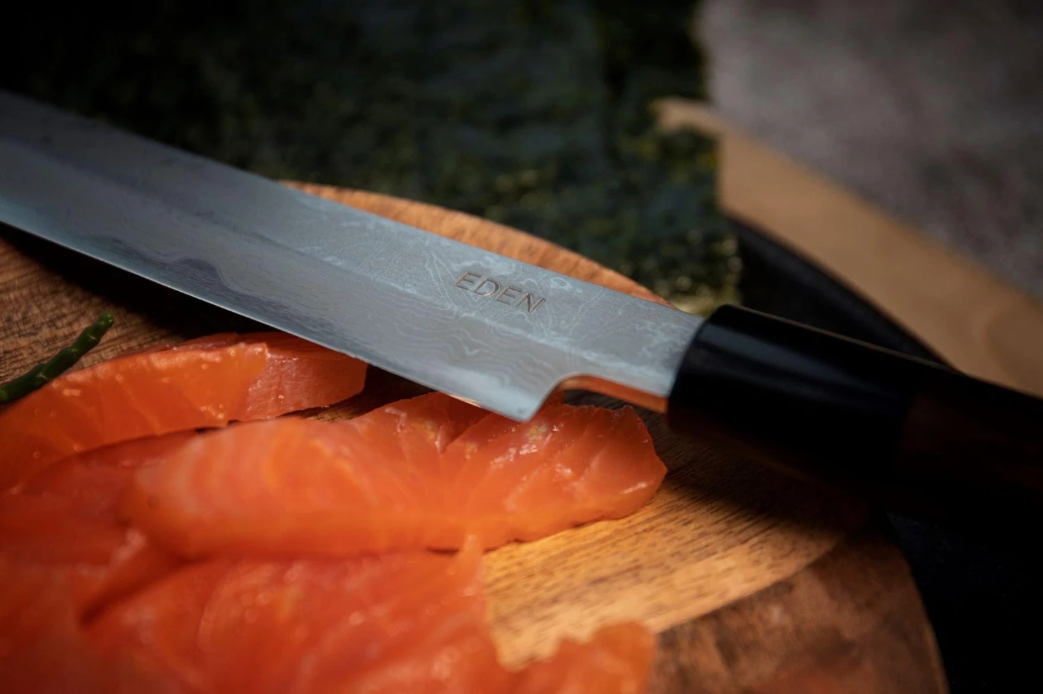 La Eden Takobiki Ryoba 30 cm es una gran espada samurái para la cocina. Con una hoja de 30 cm de longitud, podrás cortar el sashimi fácilmente de forma muy fina.