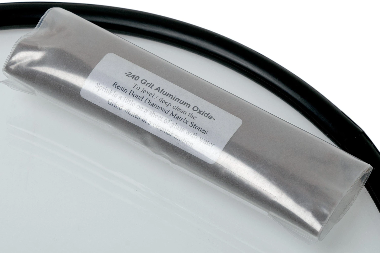 Con este Edge Pro Leveling Kit podrás solapar tu propia piedra de afilar. Se utiliza la hoja de vidrio en combinación con polvo de óxido de aluminio y agua. La potencia del óxido de aluminio es adecuada para un tamaño de grano de hasta 240.