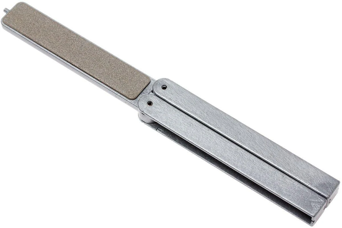 La EZE-LAP EZE-Fold 510 es una piedra de afilar de diamante de doble cara con un tamaño de grano súper fino (1200) en un lado y un tamaño de grano medio (400) en el otro. La piedra de afilar de doble cara tiene mangos de plata que se doblan alrededor de la piedra cuando se pliega. Como resultado, la piedra está siempre bien protegida. Es ideal para llevarla de viaje, a la caza o a la pesca, pero también es práctica para el hogar.