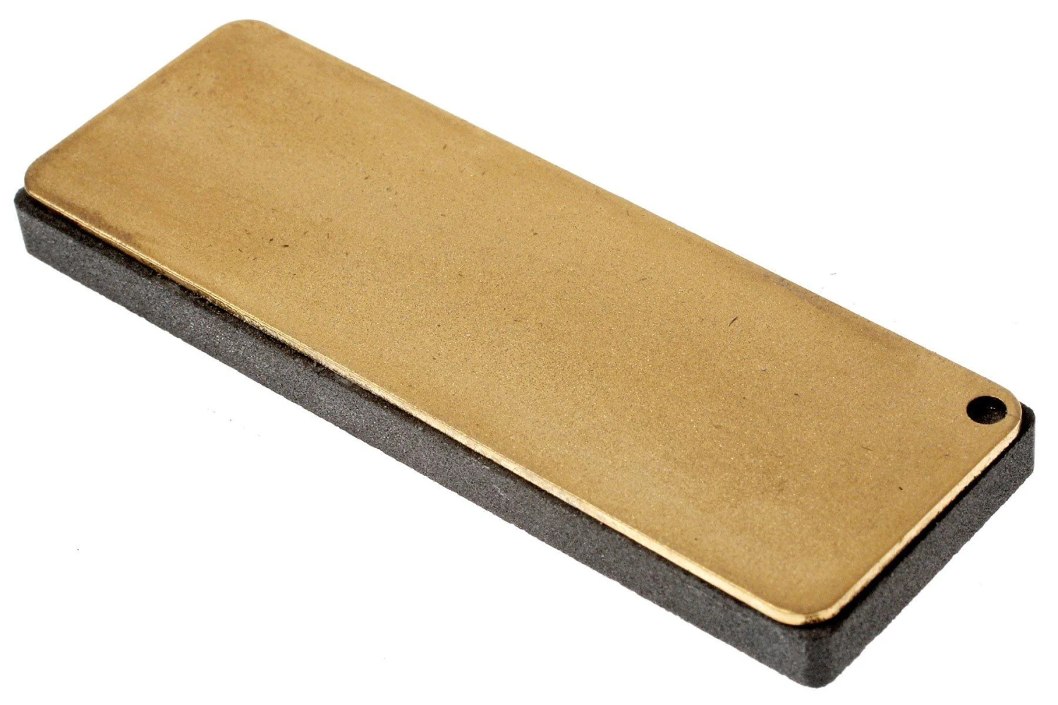 Piedra de afilar combinada de diamante y cerámica que contiene una fina piedra de diamante (25 micras) y una piedra de cerámica de zafiros sintéticos. Estos materiales siguen manteniendo su forma plana y son capaces de afilar aceros en polvo extremadamente duros. Estas piedras no necesitan lubricación, pero sí una limpieza de vez en cuando con agua tibia y detergente. Las piedras pueden parecer ásperas al principio, pero se volverán más suaves después de un cierto uso. Incluye una funda de cuero.