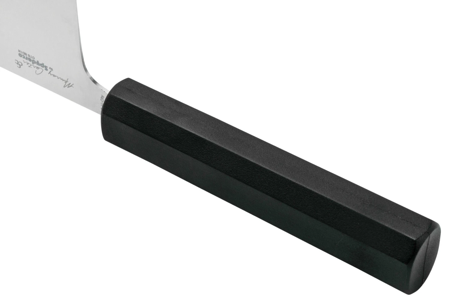 El Spyderco Minarai Bunka Bocho de la Colección Murray Carter es un cuchillo multifuncional, adecuado para cortar carne, pescado y verduras. Bunka Bocho significa «cuchillo cultural» por su función en la preparación de platos tradicionales japoneses. Al igual que el cuchillo santoku, el Bunka Bocho también tiene una forma cónica.